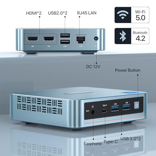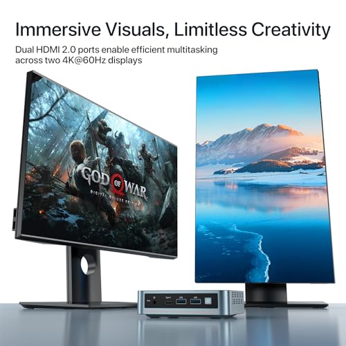 【Dual HDMI, 4K Dual Screen Display】 Der Mini-Desktop-Computer ist mit Intel UHD Graphics (max. 750 MHz) ausgestattet, bietet leistungsstarke Grafikleistung, unterstützt 4K-Videowiedergabe, kann an einen Projektor als Heimkino angeschlossen werden und ermöglicht eine Diversität von Unterhaltungsmöglichkeiten. Zwei HDMI 2.0-Anschlüsse ermöglichen effizientes Multitasking auf zwei 4K@60Hz Displays. Enthält eine VESA-Halterung, um einen Raum-in-One-PC einzurichten und Platz auf dem Schreibtisch freizugeben.
