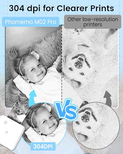 Hochauflösender Reproduktion: Der Phomemo M02Pro Mini-Thermodrucker hat eine hohe Rückbau von 300 dpi für einen deutlicheren Reproduktion
