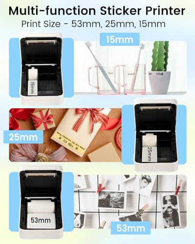 Bluetooth-Etikettendrucker für zu Hause: Der tragbare Thermodrucker M02Pro ist mit drei Papierformaten kompatibel: 15 mm, 25 mm, 53 mm. Organisieren Sie Ihre Etikettenaufkleber mit der „Phomemo“ APP