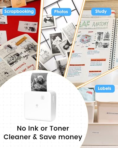 Inklusiver Thermodrucker: Keine Tinte oder Toner erforderlich, spart Testen. Empfohlen für die Verwendung mit Phomemo Druckpapier