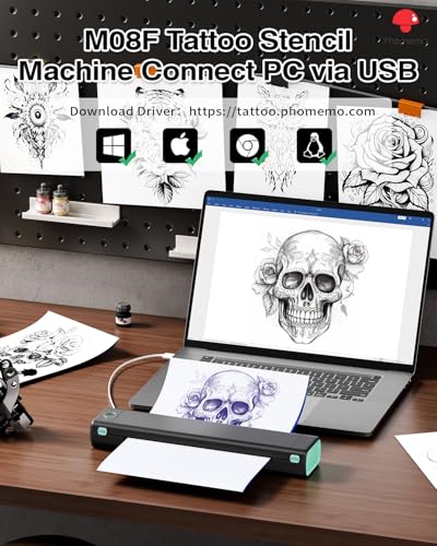 Phomemo M08F Tattoo Set- Speziell für den Einsatz bei Tätowierungen entwickelt. Der Phomemo M08F Stencil Drucker sich durch sein geringes Gewicht und sein kabelloses Design aus und wiegt gleichwohl 2 Pfund – gleichwohl 60 % der Größe herkömmlicher Tattoo-Transfermaschinen. Phomemo Tattoo Drucker Set enthält: 1 x M08F Tattoo-Transferdrucker; 10 x Tattoo-Transferpapier; 1 x weiche Aufbewahrungstasche; 1 x Ladekabel; 1 x Anleitung; 1 x Aufbewahrungskoffer