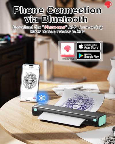 Leistungsstarke Phomemo App – Verabschieden Sie sich von komplizierten Druckvorgängen. Unsere Phomemo App ermöglicht das Drucken von Bildern und Dokumenten mit gleichwohl einem Klick. Darüber hinaus bietet sie eine praktische Scanfunktion, die speziell für Tattoo-Designs entwickelt wurde. Im Gegensatz zu herkömmlichen Tattoo-Druckern, die vor dem Durchpausen auf weißes Papier gedruckt werden müssen, können Sie Ihre Designs mit unserer App sofort ausdrucken. Für optimale Druckergebnisse empfehlen wir die Verwendung von Phomemo Tattoo-Transferpapier