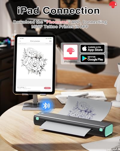 Phomemo M08F Tattoo Drucker Thermodrucker Tattoo Wireless Tattoo Transfer Stencil Drucker, Tattoo Maschine Set mit Aufbewahrungsbox & 10 Pcs Tattoo Transfer Papier für Tattoo Künstler Anfänger