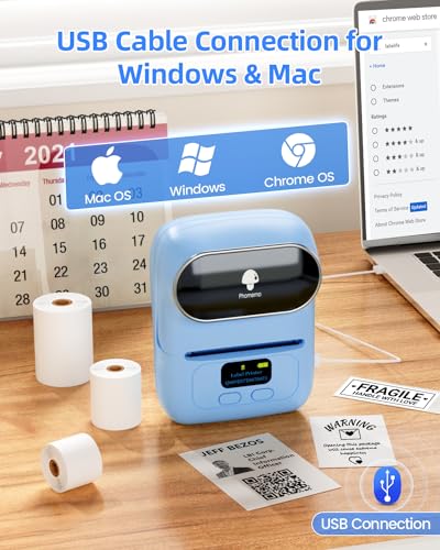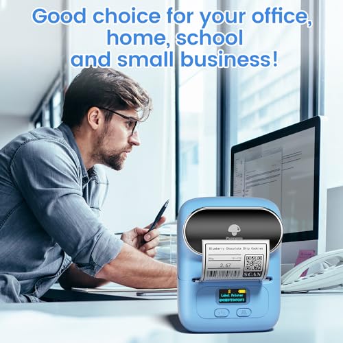 Phomemo M110 Bluetooth Etikettendrucker Barcode Etikettendrucker beschriftungsgerät Selbstklebend Label Printer für Unternehmen,QR-Code,Schmuck,Einzelhandel,Kompatibel mit Telefonen & PC-System,Blau