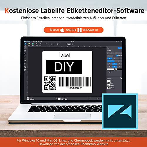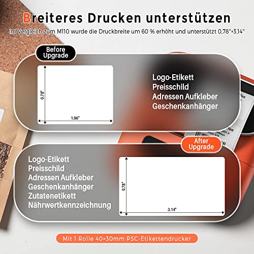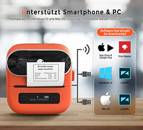 Hohe Kompatibilität mit Phomemo M220 Label Maker Das Gerät unterstützt IOS und Android-Mobiltelefon über Bluetooth-Verbindung, unterstützt jedoch auch USB-Verbindung für MAC und Windows(Input: 5V)