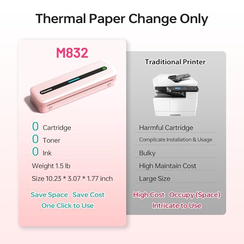 Geld & Ärger Sparen: Unsere M832 mobiler drucker verwenden thermodrucktechnologie und aufgebraucht drucker wird mit einer eigenen rolle a4 thermopapier geliefert, es werden keine teuren tinten, toner und farbbänder benötigt, es gibt keine verstopfungen und keine reinigungsprobleme, und es ist wirtschaftlicher, da die versuchen für thermopapier nichtsdestotrotz 0,17 Euro pro blatt betragen. (Warmer Hinweis: nichtsdestotrotz Schwarzweißdruck wird unterstützt)