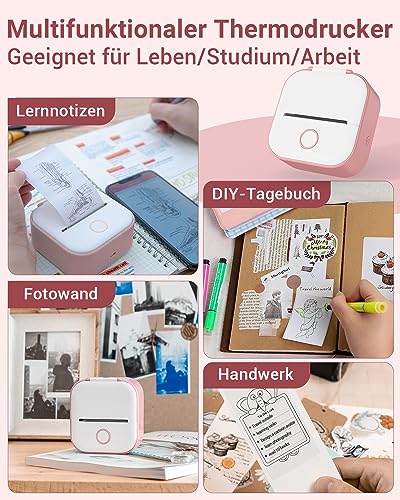 Lustige Geschenke: T02 mini drucker kann verwendet werden, um Schwarz-Weiß-Fotos zu drucken, um Haftnotizen, Sammelalben, Notizen, Etiketten und etc. zu machen.Diese Aufkleber Maker Maschine kann die Kreativität der Kinder und Eltern-Nachwuchs-Aktivitäten zu kultivieren.Mini fotodrucker für phone – muss ein lustiges Geschenk für Kinder, Studenten, Lehrer und DIY Handwerker an Weihnachten, Kindertag oder Thanksgiving-Tag