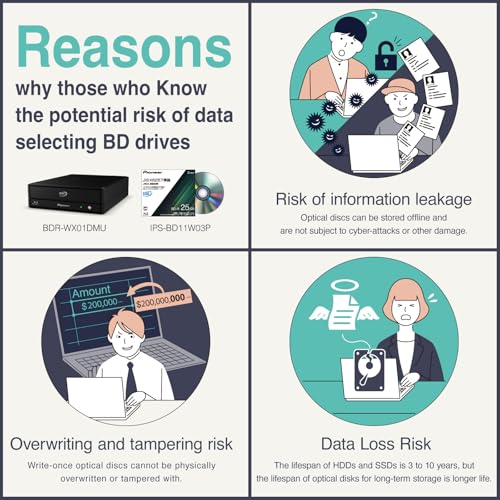 Pioneer Externes Blu-ray-Laufwerk BDR-WX01DME, Konform mit Norm ISO/IEC 18630,DM for Archive-kompatibel USB 3.2 Gen1/2.0 Externer BD/DVD/CD-Brenner für Archivierungen