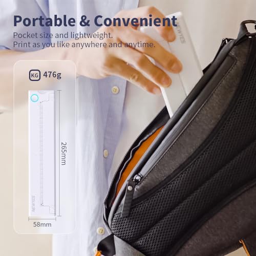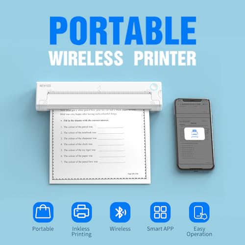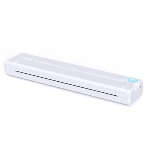 Portable Drucker, Bluetooth Mobile Tragbarer Drucker A4 unterstützen 210x297mm A4 Thermopapier, Wireless No-Ink Reisedrucker, kompatibel mit Android, Laptop und iOS für Unterwegs nur 475g Gewicht! Wei