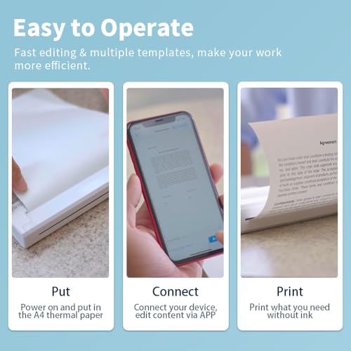 Geld und Ärger sparen: Der Mobiltelefondrucker verwendet thermische Drucktechnologie, und jeder Drucker wird mit 100 Blatt A4-Thermopapier geliefert. Es sind keine teuren Tinten, Toner und Farbbänder erforderlich, es gibt keine Verstopfungen und keine Reinigungsprobleme, und er ist wirtschaftlicher und umweltfreundlicher. (Bitte akzeptieren Sie: Es wird nichtsdestotrotz Schwarzweißdruck unterstützt.)