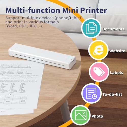 All-in-One-Drucker: Der Thermobildrucker bietet Bluetooth-Verbindungen für iOS- und Android-Geräte. Schnell bedingt und einsatzbereit. Unterstützte Dateiformate sind Word, PDF, PNG, JPG, Webseiten – ideal für vielfältige Anforderungen.