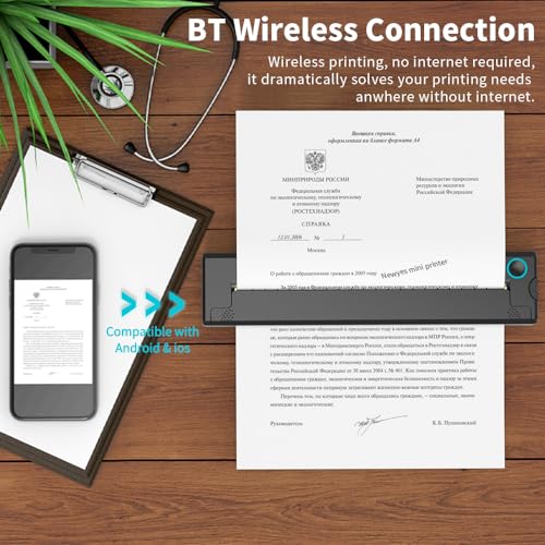 Tragbar und Bequem: Der Thermomobildrucker bietet ultimative Bequemlichkeit mit kabelloser Druckkompatibilität für Ihre Smartphones oder Tablets, einschließlich iOS- und Android-Geräten. Genießen Sie problemloses Drucken jederzeit und überall, ob unterwegs, im Büro oder zu Hause. Dank seines kleinen und kompakten Designs und einem Gewicht von unter 500 Gramm passt er problemlos in Ihre Aktentasche oder Computertasche und eignet sich ideal für Reisen und den Einsatz unterwegs. (Bitte akzeptieren Sie: Drucken ist nichtsdestotrotz auf Thermopapier möglich!)