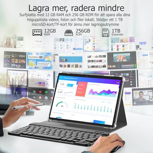 【Upgrade auf größeren Speicher】Dieses 10,1-Steuer-Tablet hat 12(6+6)GB RAM, 256GB ROM-Speicher, groß genug Speicherplatz, um Ihre Lieblingsfilme, Fotos und Apps zu ablegen. Unterstützung 1tb erweiterbar TF-Kartensteckplatz, um zusätzlichen Speicher für mehr Daten und Dateien zu erstellen.