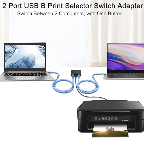 【2 USB2.0 auf USB B Kabel】USB B Drucker gemeinsam Schalter Adapter. Wird mit 2 x 1,5 m langen Druckerkabeln für den Adapter zum Anschluss an 2 Computer geliefert.