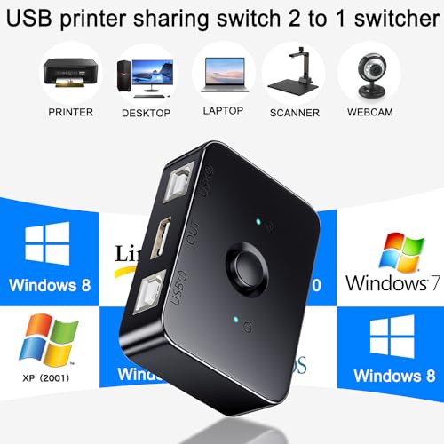 2 Port USB Drucker gemeinsam Konverter Umschalter.Aneinander fügen Sie 2 Computer, um 1 Drucker gemeinsam zu nutzen, und bearbeiten Sie so die Effizienz im Büro. Enthält zwei 1,5 m lange Druckerkabel zum Anschluss des Adapters an zwei Computer. Drücken Sie die Taste des Adapters, um zwischen den beiden Computern umzuschalten. An den beiden Anschlüssen anhand LED Als angezeigt erscheinen lassen können Sie leicht ersehen, welcher Computer anhand dem Drucker bedingt ist. Eingebauter Hochleistungs Host Controller Chip, Plug and Play, keine Installation und externe Stromversorgung erforderlich. Unterstützt die gängigen Systeme Windows XP, Win 7/8/10/ista und MacOS.