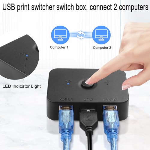 【Manuelle Umschaltung】USB Drucker Gemeinsamer Schalter 2 zu 1 Umschalter. Drücken Sie die Taste, um den Druck zwischen 2 Computern hin und her zu schalten.