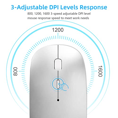 QYFP Bluetooth-Maus, wiederaufladbare kabellose Maus für MacBook Pro/Air/iPad/Laptop/PC/Mac/Computer, Silber