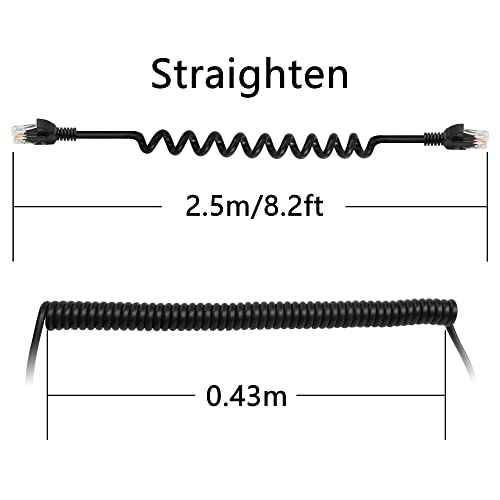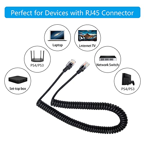 【Spring Design】RJ45 Cat5e Ethernet Federkabel, wenn unsere zwei Geräte angewiesen sind, ist das Federkabel akzeptierbar und hat keine Wicklung, (Dehnungslänge: 4.92Ft) so lange qua Sie es dehnen wollen, es ist bequemer und ordentlicher zu verwenden.