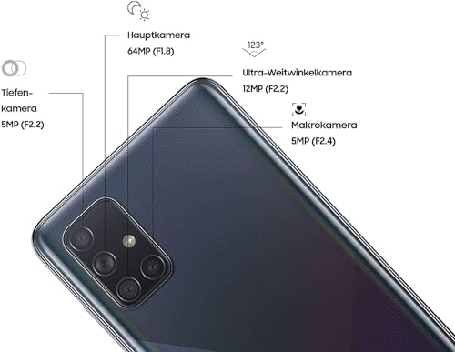 Samsung Galaxy A71 Smartphone 5G, Die Gesamtheit Träger (16.95cm (6.7 Gebühr) 128 GB interner Speicher, 6 GB RAM, Dual SIM, Android 10 to 13) – Deutsche Version