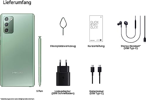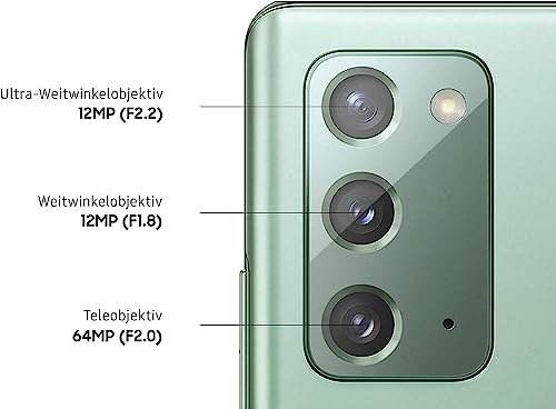 Samsung Galaxy Note 20 5G Smartphone ohne Vertrag 256 GB Speicher, Triple Kamera 64MP, Infinity-O Display, 4300 mAh Akku, Android 10 to 13 – Deutsche Version (Grün)