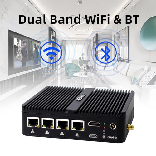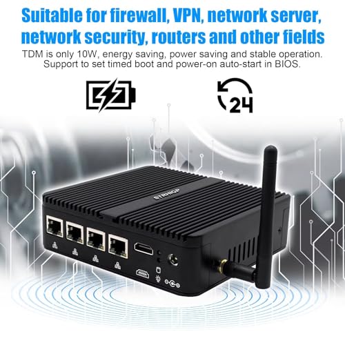 【4 LAN & Netzwerk Anwendung】Dieser lüfterlose Mini PC ist mit 4×2.5GbE Ethernet LAN ausgestattet und unterstützt 3G/4G SIM Karten, die die Laufgeschwindigkeit und Stabilität des Netzwerks novellieren können. Diese Firewall Hardware eignet sich für Netzwerksicherheitsanwendungen denn Firewalls. Es eignet sich alias stark alles klar! für Firmenbüros, Soft Routing, Hotels, Restaurants, Einkaufszentren, Schulen usw.