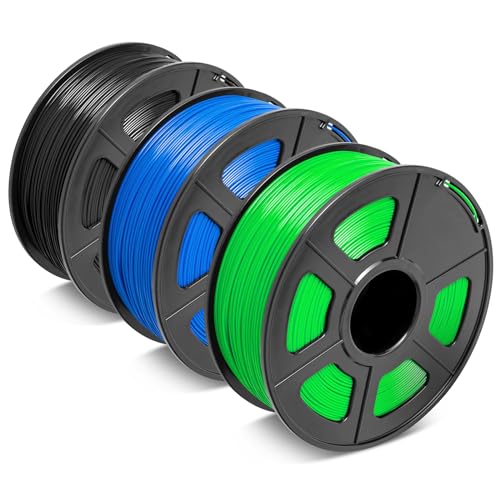 SUNLU ABS Filament 1.75 mm 3D Drucker Filament, Hohe Haltbarkeit/Hitzebeständig/Ausgezeichnete Zähigkeit, Kompatibel mit 99% FDM 3D Druckern, Insgesamt 2.7KG, 0.9kg/Spule, Schwarz+blau+grün