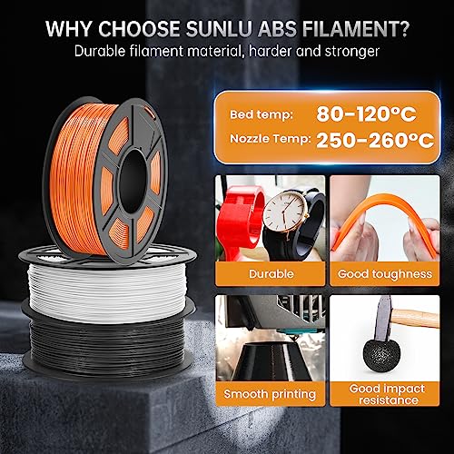 【SUNLU Ausgezeichnetes ABS Filament】- Bestes ABS Filament 1.75 mm für eine Herstellung langlebiger Teile. // Hohe Reinheit. Hohe Präzision. Hohe Zähigkeit. Geringe Schrumpfung. Hitzebeständigkeit. Ausgezeichnete Schlagfestigkeit. Hohe Abriebleistung. Ölbeständigkeit. Feuer resistent.