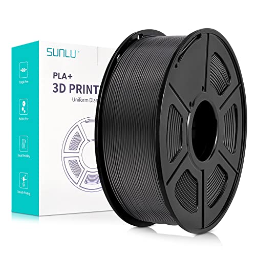 SUNLU PLA Plus 3D Drucker Filament, PLA+ Filament 1.75mm, sauber gewickeltes Filament, robustes 3D Filament, kompatibel mit 3D FDM Druckern, Maßgenauigkeit +/- 0.02 mm, 1kgSpule(2.2Pfund), Schwarz