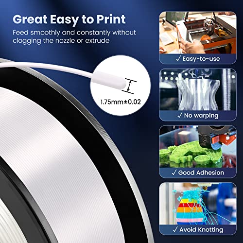 ②【Stabile und Gleichmäßige Maßgenauigkeit】1,75mm pla+ silk 3d Druckerfilament hat eine Maßgenauigkeit von +/-0,02mm, die minimale Toleranz und Präzision von silk pla plus Filament gewährleistet einen konstanten und reibungslosen Vorschubprozess ohne Verstopfung. Stabiler Druck für konsistente Drucke.