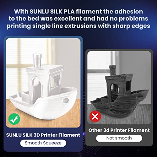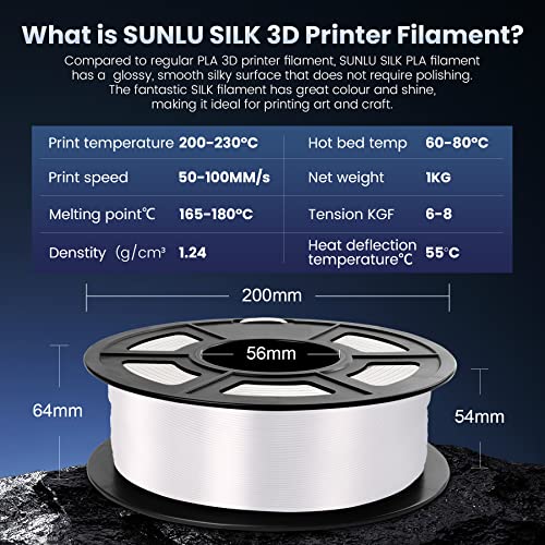 ①【SUNLU Shiny SILK PLA+ Filament】Im Abmachung zu normalem PLA 3D-Drucker Filament, sind SUNLU Silk PLA 3D-Drucker Filamente härter und haben eine glänzende, glatte, seidige Oberfläche, die kein Glätten erfordert. SUNLU hochwertiges Filament pla+ silk hat eine Mannigfaltigkeit von wunderschönen Farben, um Ihre Bedürfnisse für den Abdruck von starken 3D gedruckten Kunsthandwerken und Kunstwerken mit glänzendem seidigem Finish zu verriegeln.
