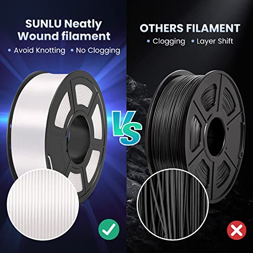 ④【Neatly Wound SILK PLA Filament】SUNLU verpflichtet sich, das 3D-Abdruck-Filament sauber gewickelt zu untersuchen, um Verwicklungen im 3D-Abdruck zu abwenden, um sicherzustellen, dass das seide pla plus filament 1,75mm nicht verwickelt, glattes Drucken, effektiv das Problem des Druckbruchs zu abspecken, um Ihren Bedarf an großen Objekten zu verriegeln.