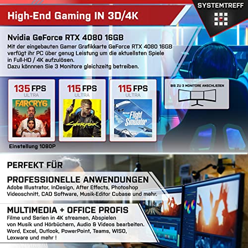 Grafik: NVIDIA RTX 4080 16GB Technik:(4K,GDDR6X,256bit,PCIe 4.0,DX12,DLSS 3) adäquat für: 4K Gaming, Videobearbeitung, Anschlussmöglichkeit von bis zu 4 Monitoren