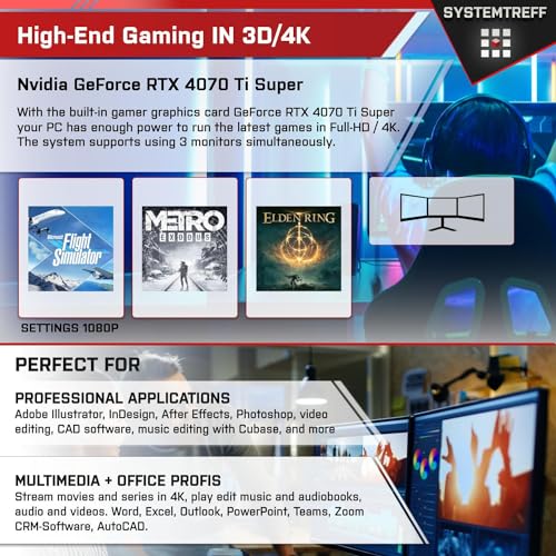 Grafik: NVIDIA RTX 4070 Ti SUPER 16GB Technik:(4K,GDDR6X,256bit,PCIe 4.0,DX12,DLSS 3) adäquat für: 4K Gaming, Videobearbeitung, Anschlussmöglichkeit von bis zu 4 Monitoren