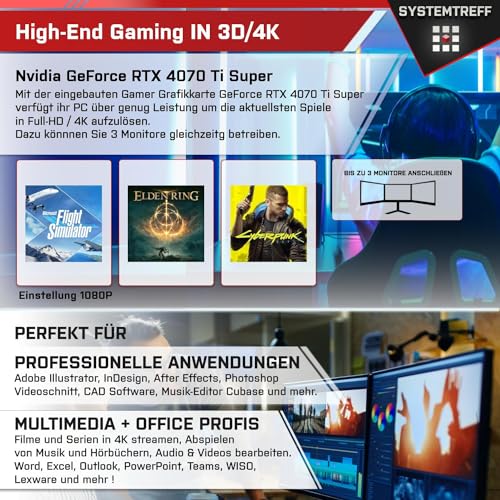 Grafik: NVIDIA RTX 4070 Ti SUPER 16GB Technik:(4K,GDDR6X,256bit,PCIe 4.0,DX12,DLSS 3) angebracht für: 4K Gaming, Videobearbeitung, Anschlussmöglichkeit von bis zu 4 Monitoren