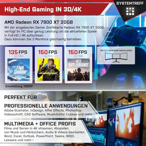 Grafik: AMD Radeon RX 7900 XT 20GB Technik:(4K,GDDR6,320bit,PCIe 4.0,DX12,FSR 3) angebracht für: 4K Gaming, Videobearbeitung, Anschlussmöglichkeit von bis zu 3 Monitoren