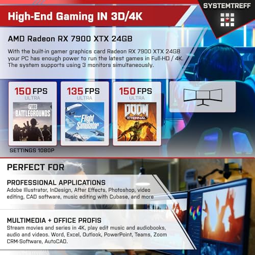 Grafik: AMD Radeon RX 7900 XTX 24GB Technik:(4K,GDDR6,384bit,PCIe 4.0,DX12,FSR 3) angemessen für: 4K Gaming, Videobearbeitung, Anschlussmöglichkeit von bis zu 3 Monitoren