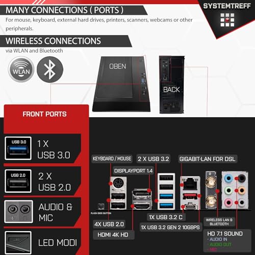 Mit seiner umfassenden Auswahl an Anschlüssen, darunter Audio, LAN, PS2, USB 3.2, USB 2.0, erweist sich das Mainboard als idealer Allrounder, perfekt angemessen für Streaming und Gaming. Die in diesem System integrierte AMD Radeon RX 7900 XTX 24GB, bietet angemessene Leistung für viele Spiele.