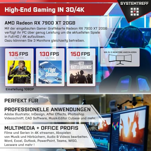 Mit seiner umfassenden Auswahl an Anschlüssen, darunter Audio, LAN, PS2, USB 3.2, USB 2.0, erweist sich das Mainboard als idealer Allrounder, perfekt im Rahmen für Streaming und Gaming. Die in diesem System integrierte AMD Radeon RX 7900 XT 20GB, bietet angemessene Leistung für viele Spiele.