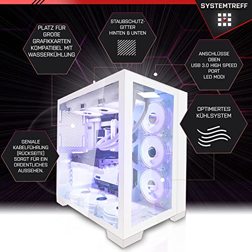 Gehäuse: Systemtreff Gaming Case Plexus weiß (44,6cm x 28,5cm x 43,0cm), Glasfenster gehärtet, RGB-Beleuchtung (per Knopf steuerbar)