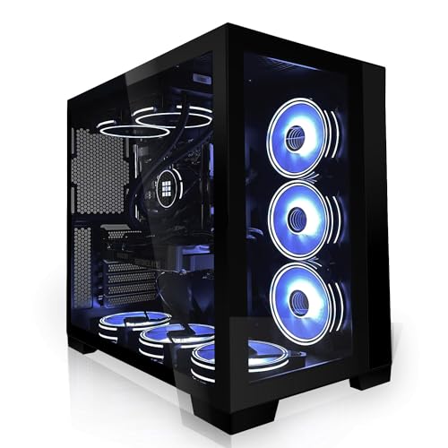 Gehäuse: Systemtreff Gaming Case Plexus schwarz (44,6cm x 28,5cm x 43,0cm), Glasfenster gehärtet, RGB-Beleuchtung (per Knopf steuerbar)