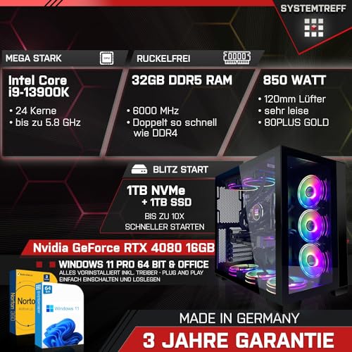 Ihr High-End Gaming PC punktet mit einem Intel Core i9-13900K 24×5.8GHz und 32GB DDR5 6000 MHz Team Group RAM, eine Kombination, die speziell für reibungslose Leistung unter Windows 11 optimiert ist. Diese Ausstattung ist ideal für die Anforderungen beliebter Spielgenres wie First-Person-Shooter, Rollenspiele und Online-Gaming. Mit diesem PC sind Sie bestens vorbereitet, um in die vielfältigen Welten des Gamings einzutauchen.