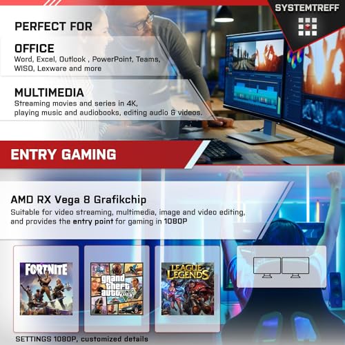 SYSTEMTREFF Office PC AMD Ryzen 7 5700G 8×4.6GHz | AMD Radeon RX Vega 8 4K HDMI DX12 | 1TB M.2 NVMe | 32GB DDR4 RAM | WLAN Silent Desktop Computer Rechner für Büro Business Multimedia