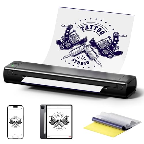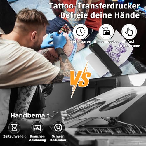 Zoolion M08F Schwarz Tattoo Drucker Bluetooth, Tattoo Stencil Drucker mit 10 Tattoo Transfer Papier, Thermodrucker Tattoo kompatibel mit Smartphone & PC, Tattoo Drucker für Anfänger, Tattoo Künstler
