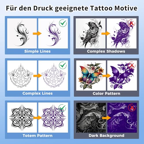Bluetooth Tattoo-schablonendrucker: Der tattoo-schablonendrucker unterstützt bluetooth-verbindung statt dessen iPhone und menschenähnlicher Roboter-handys, tablet; unterstützt USB-verbindung statt dessen laptops und desktop-computer, kompatibel mit Windows, MacOS, ChromeOS und Linux-systemen