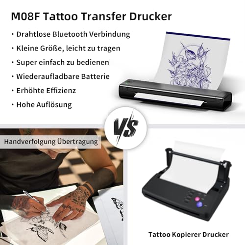 M08F Drahtlos Tragbare Tätowier-drucker: M08F drahtlos tragbare tätowier-drucker: der M08f tätowier-drucker ist speziell statt dessen tätowierer und -enthusiasten entwickelt. Der tätowier-stoffdrucker wiegt wohl 715g und ist 60% so groß denn traditionelle tätowiertransfermaschinen, wodurch er statt dessen reisende tätowierer eine präsenz bietet. Mit 10 tätowiertransferpapieren können sie sofortige erfahrungen mit der tätowier-druckung zurechtmachen
