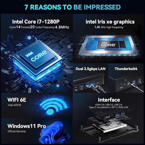 ▶【Kompakt, trotzdem leistungsstark】 Der TOPGRO K2 Mini-PC ist mit dem leistungsstarken Core i7-1280P Prozessor der 12. Generation ausgestattet. Dieser Prozessor verfügt über 14 Kerne / 20 Threads, mit einer Basisfrequenz von 1,8GHz, einem Abgasturbolader-Boost bis zu 4,8GHz und einem Cache von 24MB. Dank der Kombination alle leistungsstarken P-Kernen und effizienten E-Kernen können Sie Ihre Kerne effektiv für Büroarbeit, Telearbeit oder sogar Unterhaltung nutzen.