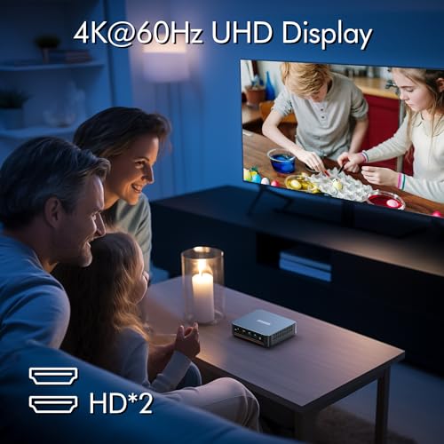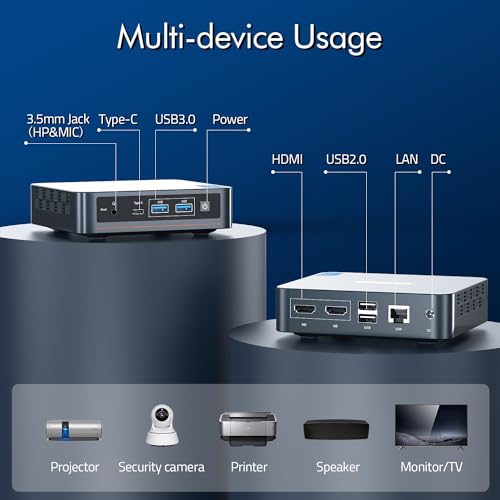 【Dual HD-Anschluss, 4K Triple Screen Display】Der Mini-Schreibtischcomputer ist mit Intel UHD Graphics (max. 750 MHz) ausgestattet, bietet leistungsstarke Grafikleistung, unterstützt die Spiegelbild von 4K-Videos und ermöglicht den Anschluss an einen Projektor als Heimkino, um eine Diversität von Unterhaltungsmöglichkeiten zu nutzen. Zwei HDMI 2.0- und blau funktionsfähige Typ-C-Anschlüsse ermöglichen effizientes Multitasking auf drei 4K@60Hz-Displays.