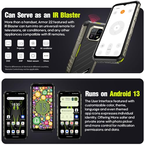 🟠【Unterstützt IR-Fernbedienungs】: Mit einem IR-Blaster verwandelt sich Armor 22 in eine Universalfernbedienung für Fernseher, Klimaanlagen oder andere Geräte, die mit IR-Fernbedienungen kompatibel sind. Sie können es auf Fernseher, Projektor, Ventilator, Klimaanlage, DVD, Verstärker und Roboterstaubsauger verwenden.