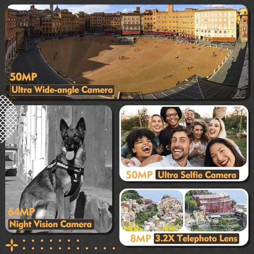 🍳-Szenario-Bildgebungssystem: Das beispiellose Quad-Kamera-Setup katapultiert Ihre Abdruck in den Bereich unübertroffener Kreativität und Präzision. Mit einer Kombination von Objektiven, die das gesamte Spektrum der Kreativität herunternehmen, können Sie Momente mit atemberaubender Klarheit und künstlerischem Flair festhalten. (50 MP Hauptkamera + 50 MP Weitwinkelkamera + 64 MP Nachtsicht + 50 MP Frontkamera)