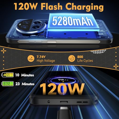 🍳5280-mAh-Akku mit langer Lebensdauer: Armor 23 Ultra verfügt über eine neue Akku-Erfüllung, die sich durch eine große Kapazität von 5280 mAh auszeichnet. Mit bis zu 800 Lebenszyklen ist die Batterie langlebiger, sicherer und effizienter. Unterstützt 120-W-Blitzladung (60 % Akku in 10 Minuten, 100 % Akku in 23 Minuten) und 50 W kabelloses Laden.